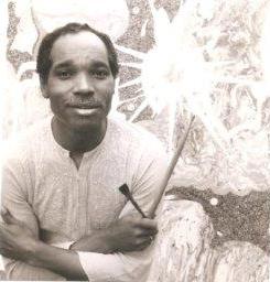 Born: Robert Underwood, January 29, 1940, Versailles, Kentucky Ayé A. Aton was an American painter, designer, muralist, musician and educator. He was renowned for his outer space-themed murals, which he painted in private homes and on building exteriors throughout Chicago’s south side from the early 1960’s through the early 1970’s. Aton played drums and percussion with Sun Ra & His Arkestra from 1972-1976, and was part of Ra’s ensemble on the albums Space is the Place and Discipline 27-II. He also performed extensively with other musicians for several decades. He played percussion with Infinite Spirit Music, who in 1979 recorded the album Live Without Fear, issued in 1980 on Ancient Afrika Records. In 1960, Underwood, living in New York, moved to Chicago, around the same time that Sun Ra & His Arkestra made the reverse relocation. John Corbett describes what happened next: “[Underwood] was busy spending time with a study group made up of older men who played checkers in Washington Park on Chicago’s South Side. He was an inquisitive young man, asking deep questions about all manners of obscure topics, and several members of the study group told him about their go-to guy for such queries: a fellow they knew as Sunny Ray, who had recently left town but was best equipped to help [Underwood] on his quest for knowledge. “Obtaining Ra’s number, [Underwood] phoned New York. Ra was immediately receptive, and for the next eleven years, [Underwood] and he spoke almost daily. Their conversations amounted to an informal mentorship: Ra gave [him] instructions, guided him, and discussed his research with the budding visual artist. And over the course of that time, a decade in the making, a remarkable and ambitious collaborative effort was mounted in Chicago, heretofore known only to a few private citizens.” After these conversations began, Underwood—now known as Ayé Aton—began painting ambitious murals in the homes of Chicago’s South Side residents. Aesthetically, he was guided by Ra’s suggestions of Egyptian motifs, colorful abstractions, and outer space imagery. Aton painted murals in dozens of homes and on building exteriors. Photos were taken of the painted walls, though titles, dates, and locations were not chronicled. Around 1971 he moved to Philadelphia, where he lived in Sun Ra’s communal house in Germantown while he was part of the Arkestra. While there, Aton painted murals in the rooms of Marshall Allen, John Gilmore, and Sun Ra. Three of Aton’s murals were reproduced (credited to “aye”) in Sun Ra’s book of poetry, Extensions Out: The Immeasurable Equation, Vol. II. In 1974, Ayé left the Arkestra and moved back to Chicago. In 1983, he moved to Baton Rouge to become a community arts advocate and play drums in local ensembles. After being diagnosed with cancer in 2016, he moved back to his native Kentucky, where he spent the last year of his life. Wherever he lived and worked, Ayé painted steadily. In his final 20 years he produced hundreds of works on canvas, paper, and board. Most of these works have never been publicly exhibited or published. This site is intended to change that, and to establish Ayé Aton as an artist whose legacy needs to be seen, appreciated, studied, and preserved. In 2013, historian John Corbett published a book entitled Sun Ra + Ayé Aton: Space, Interiors, and Exteriors, which featured previously unpublished 1960s and ’70s photographs of Aton’s large-scale murals, as well as stills from Sun Ra’s feature length film, Space is the Place.